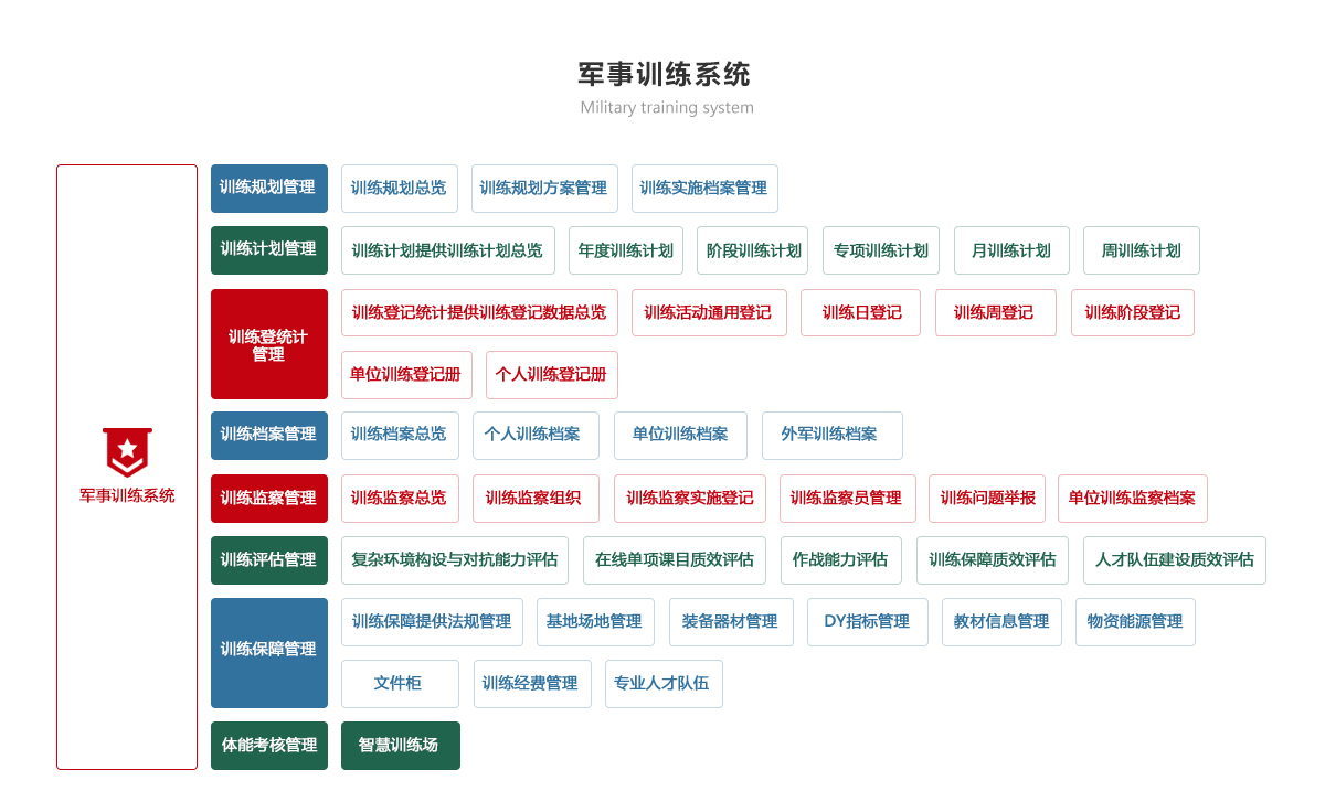 系統(tǒng)主要用于軍隊(duì)訓(xùn)練服務(wù),是對(duì)部隊(duì)訓(xùn)練管理、訓(xùn)練計(jì)劃、訓(xùn)練檢查、訓(xùn)練考評(píng)等進(jìn)行信息化采集,數(shù)字化處理、網(wǎng)絡(luò)化傳輸、智能化分析、融合化呈現(xiàn)、高效化決策的綜合性訓(xùn)練管理系統(tǒng),提升新型力量軍事訓(xùn)練科學(xué)化、信息化、規(guī)范化水平,為練兵備戰(zhàn)提供堅(jiān)強(qiáng)保障,為輔助首長(zhǎng)決策提供有力支撐。