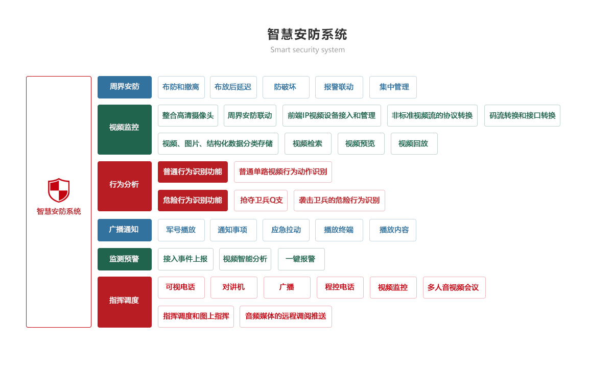 通過集成的監(jiān)控、分析、預(yù)警和應(yīng)對措施,該解決方案旨在減少安全事故的發(fā)生,及時(shí)發(fā)現(xiàn)并處理警情,有效預(yù)防潛在的破壞活動(dòng),全方位保護(hù)營區(qū)內(nèi)的每一個(gè)角落。同時(shí),智能安防系統(tǒng)解決方案利用先進(jìn)的數(shù)據(jù)分析和處理技術(shù),為營區(qū)的管理者提供有力支持,幫助他們更好地掌握營區(qū)的運(yùn)行狀態(tài),提高管理效率,確保營區(qū)的持續(xù)、穩(wěn)定和安全運(yùn)行。
