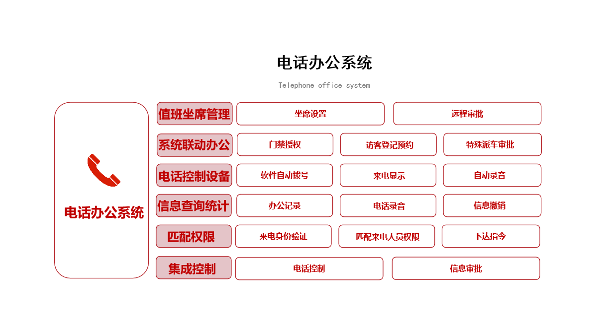系統(tǒng)功能包括電話辦公記錄、常規(guī)電話錄音、信息撤銷管理和電話辦公統(tǒng)計
