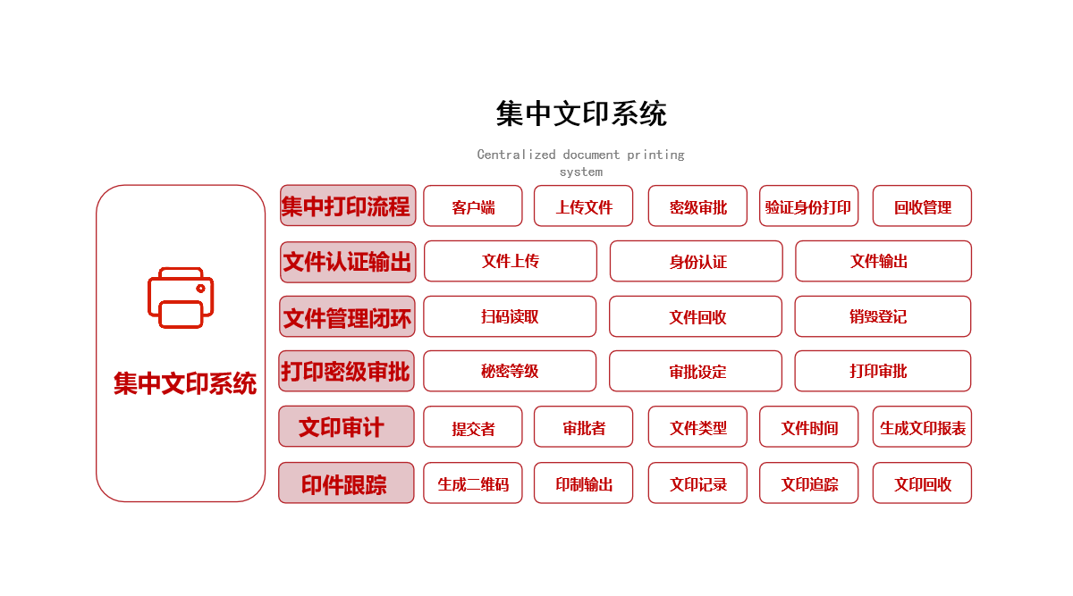 登錄客戶端→上傳文件→密級審批→驗證身份打印→回收管理