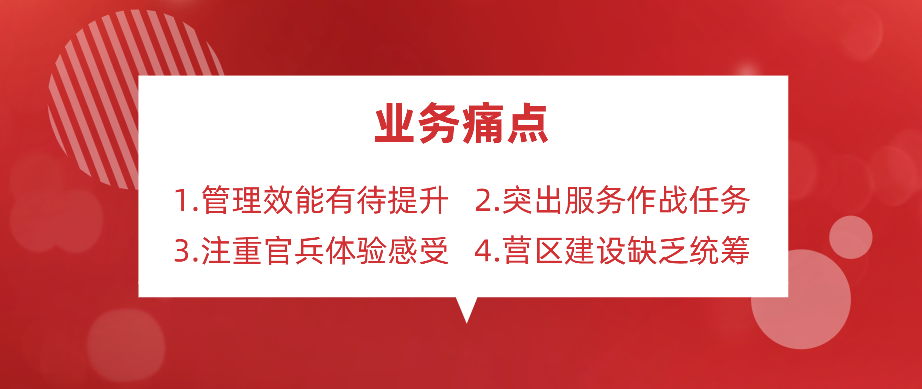 在加強(qiáng)管理的同時(shí),提高官兵在日常管理、學(xué)習(xí)作訓(xùn)和生活保障等方面的體驗(yàn),突出官兵為本的服務(wù)理念,激發(fā)官兵潛能。解決當(dāng)前營區(qū)面向官兵的在線學(xué)習(xí)、辦公管理和生活服務(wù)等方面的便捷性問題;解決如何利用信息化手段,降低官兵日常管理執(zhí)勤任務(wù)繁重的問題,使其更專注于訓(xùn)練和作戰(zhàn)保障等。