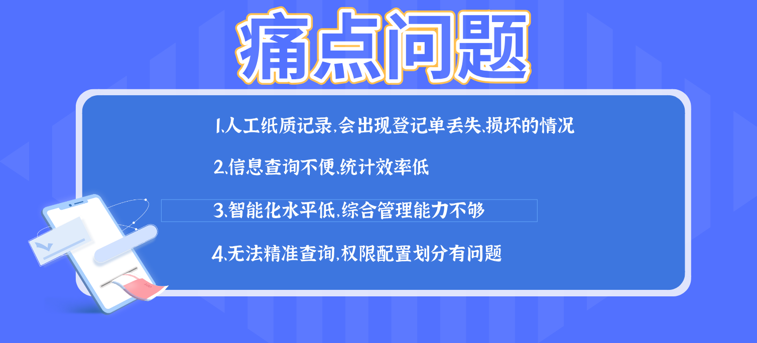 1、傳統(tǒng)依靠人工紙質(zhì)記錄,會出現(xiàn)登記單丟失、損壞的情況;