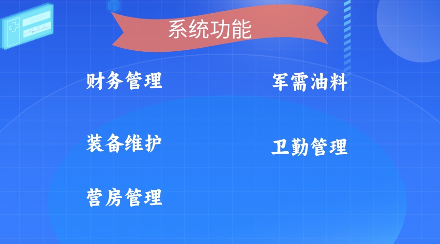 開發財務管理、軍需油料、裝備維護、衛勤管理、營房管理等功能。