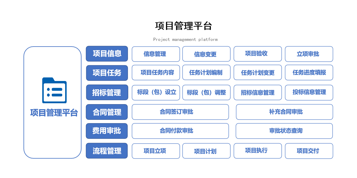 整合項(xiàng)目綜合信息,通過(guò)對(duì)項(xiàng)目立項(xiàng)審批、信息變更、驗(yàn)收智能化管理,能夠?qū)?xiàng)目執(zhí)行過(guò)程中的諸多細(xì)節(jié)進(jìn)行流程化、專業(yè)化控制