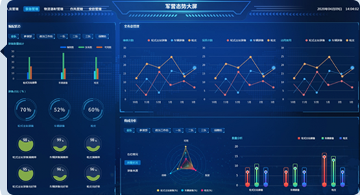 支持對接多部門現(xiàn)有業(yè)務(wù)系統(tǒng),可將不同平臺系統(tǒng)數(shù)據(jù)綜合匯集于系統(tǒng)之上,進(jìn)行可視化分析,助力挖掘數(shù)據(jù)價值,實時展現(xiàn)部隊各要素、各業(yè)務(wù)運行態(tài)勢,提高作戰(zhàn)人員指揮的能力和效率,輔助領(lǐng)導(dǎo)決策。